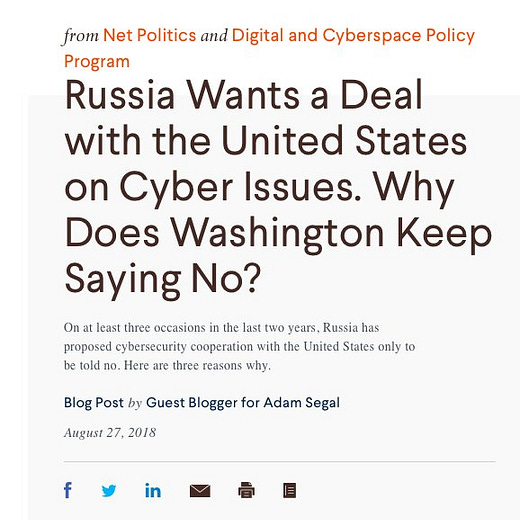 You have to remember that America runs the biggest cyber meddling and cyber attack operation in the business. And it’s not like it’s ready to give that racket up any time soon. How do we know this? Well, our government has repeatedly refused to sign cyber war treaties with Russia and China — despite multiple attempts by both of these countries to bring America to the negotiating table.