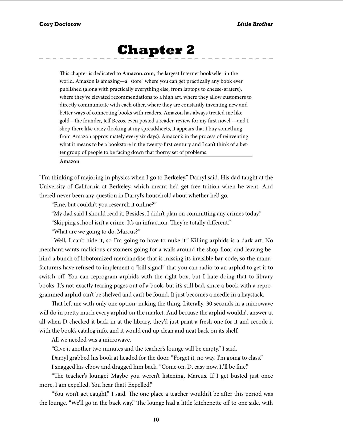 PS: I thought I might be misremembering, but no, Cory did indeed promote Amazon — and Jeff Bezos!!! — in one of his early books. “Amazon’s in the process of reinventing what it means to be a bookstore in the twenty-first century and I can’t think of a better group of people to be facing down that thorny set of problems,” he wrote. Wonder why Bezos loves Cory’s novels so much? H’mmm…