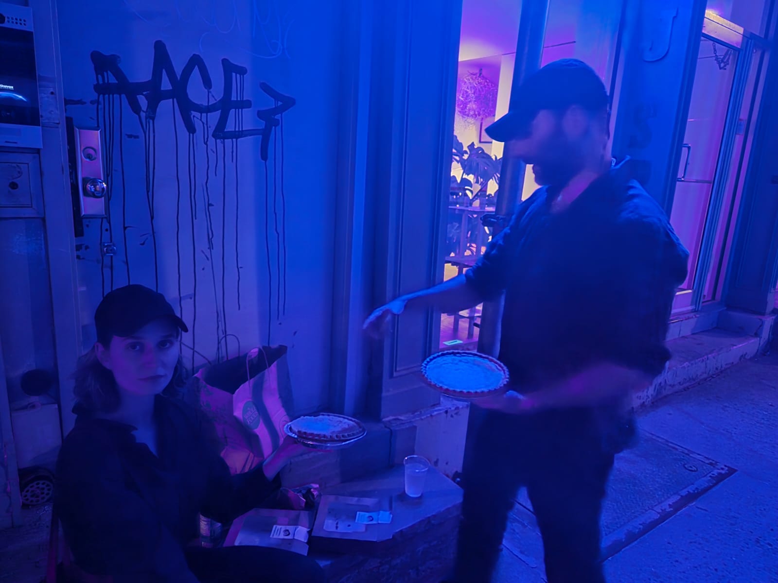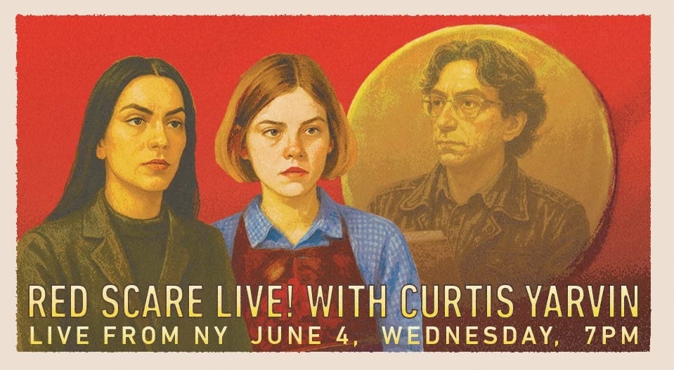 We tried to catch Yarvin last night outside the Roxy Cinema event with Red Scare in Manhattan. But we found out he’s very scared of people. He kept the location of the event a secret and then did background checks on his audience, excluding everyone who might disagree. But apparently even that wasn’t enough to placate his fears. After the super-secure event, he hid from the public — immediately disappearing inside the hotel above the event space or sneaking through the backdoor and speeding away on several black SUVs. And so despite our best efforts, he eluded us in the end. But don’t worry. We’ll catch him next time around. The pie awaits.