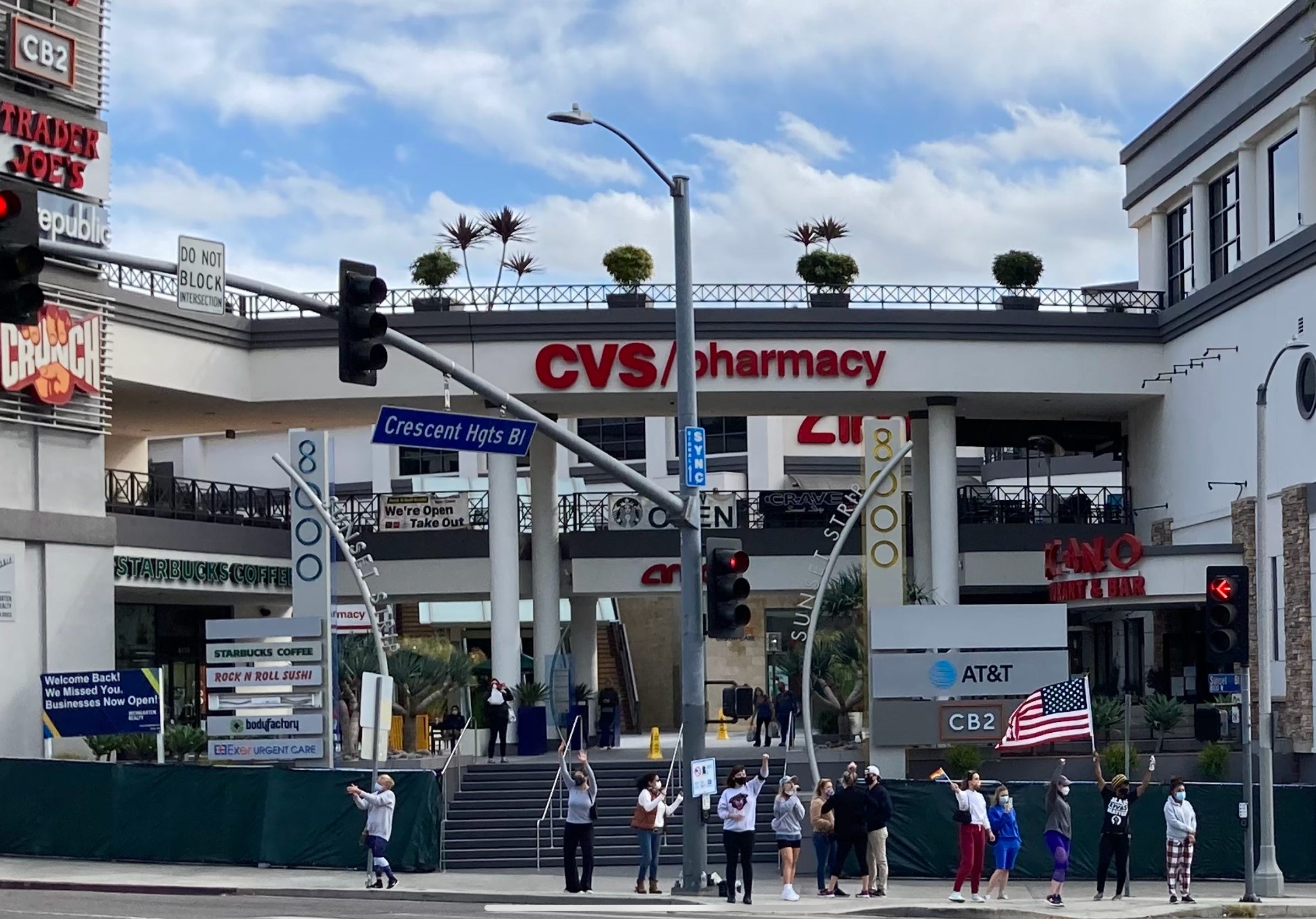 When went out to try to get some lunch out in Hollywood later that afternoon, the city had transformed into a giant block party. People had gathered on street corners — dancing, cracking champagne bottles, pouring wine. In one spot, an impromptu parade formed down Santa Monica Boulevard, with people hanging out of their Teslas and Land Rovers and Porsches with giant American flags, manically honking and yelling as crowds lined both sides of the street to cheer them on. There were even a bunch of people in American flag pants. Pants! I had never seen anything like it. Who knew LA liberals owned so many giant Trump-sized American flags? Guess they had them tucked away in storage all during the Not My President Era. But now that Trump was on the way out they could once again be American First without embarrassment.
