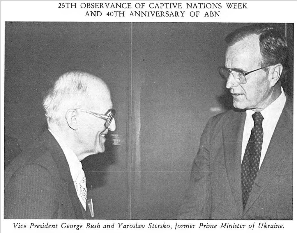 Before he went out to save Soviet Jews, Bush first paid his respects to a Ukrainian Nazi collaborator who did his best to exterminate said Jews. Gosh. Running an empire is complicated! (Source: Moss Robeson)