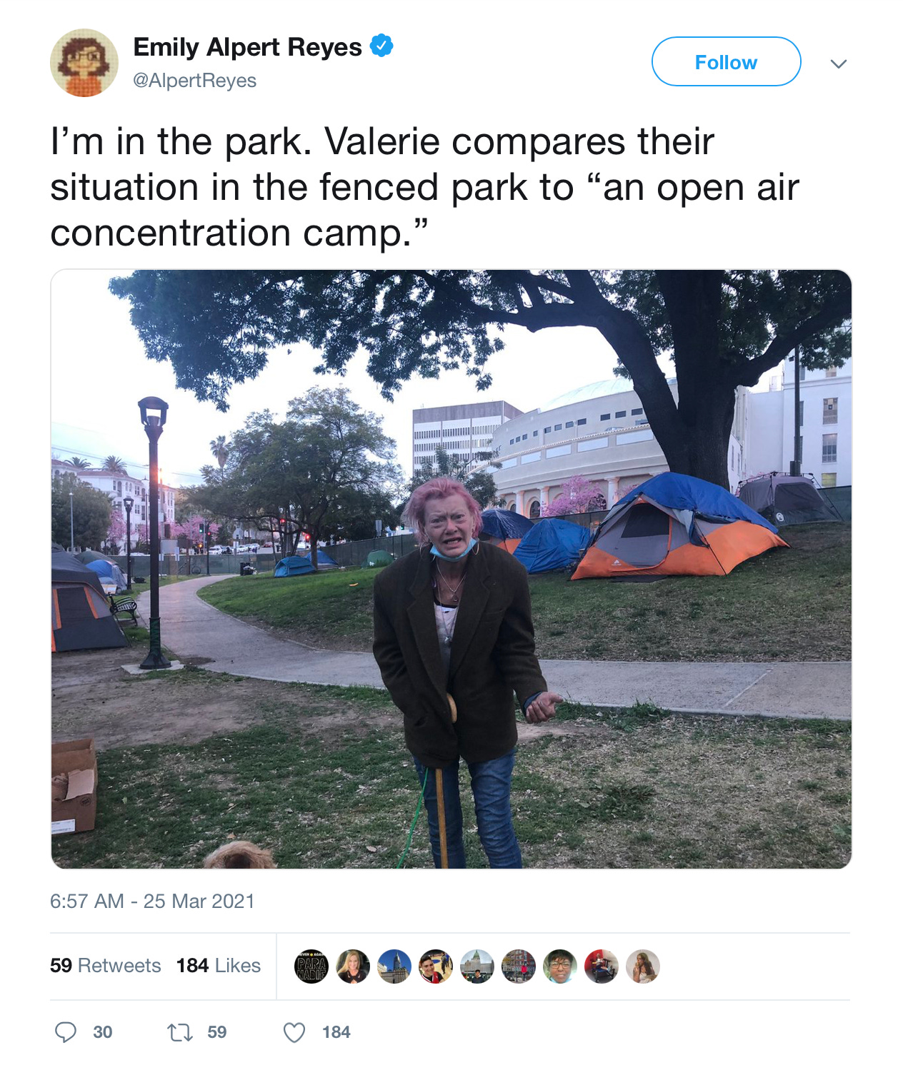 The camp at Echo Park Lake is unique. So of course the political response by this liberal, Democratic Party city is to destroy and scatter it, to push it out of sight. There’s nothing strange about it. I remember that back when Trump was around, Los Angeles’ mayor was in talks with his administration, cooking up a plan to build homeless camps on federal land somewhere far out of the city — concentration camps most likely in the Mojave Desert, where there is plenty of federal land. The attack on Echo Park Lake is this same strategy just on a smaller scale: don’t address the problem, simply push it out of sight.