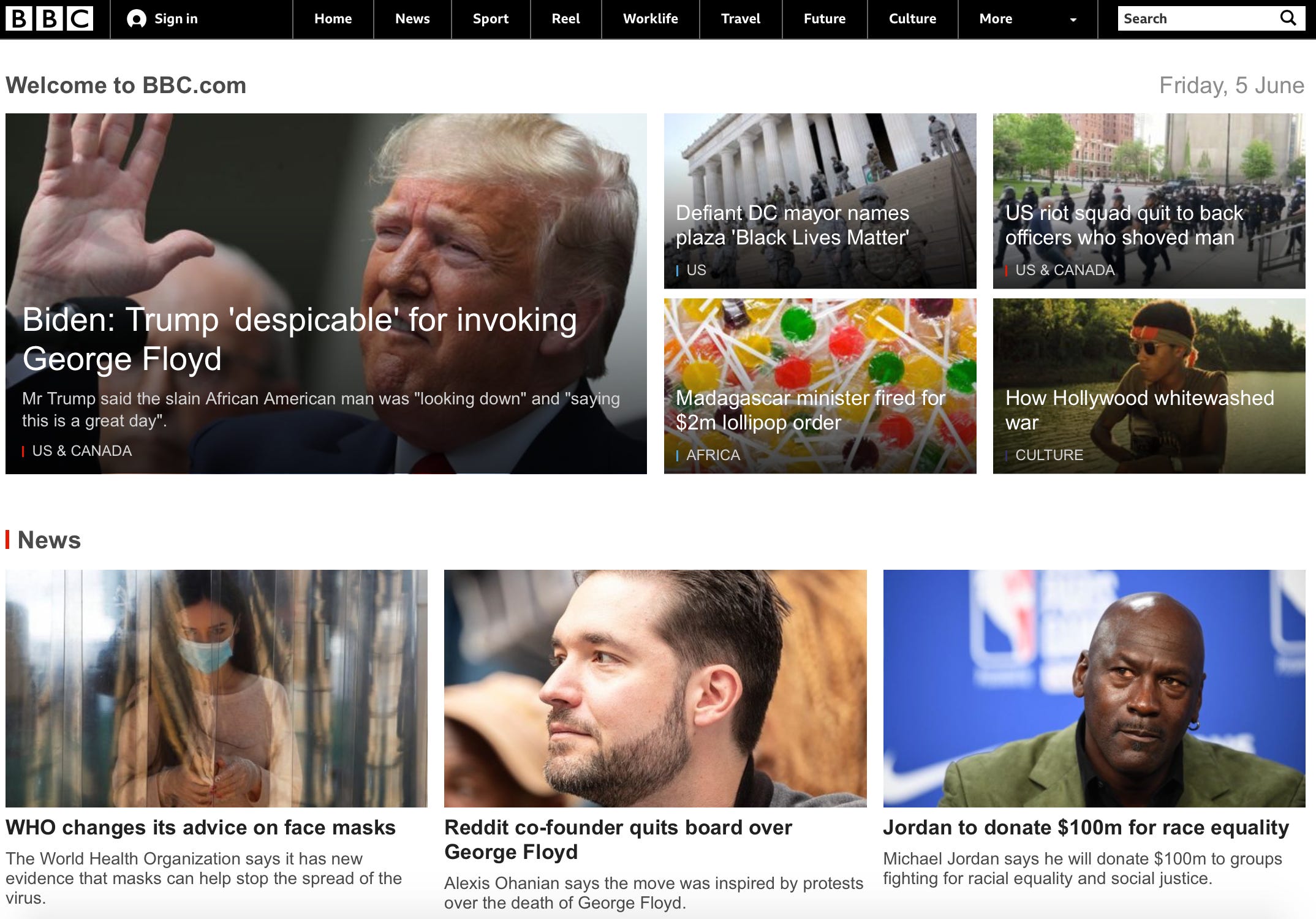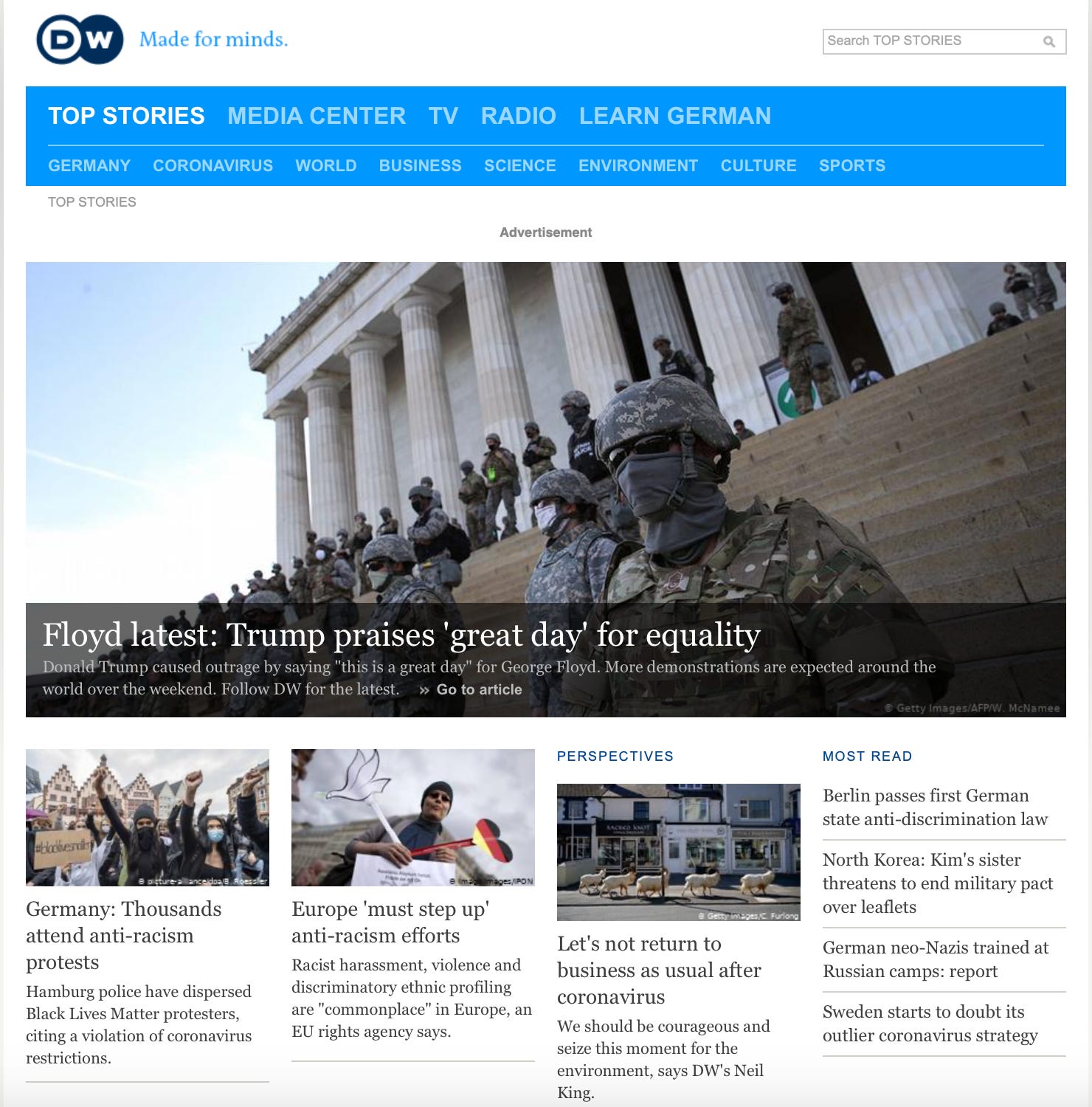 Now compare it to other state-funded media. For example, here’s Germany’s Deutsche Welle — also for June 5: