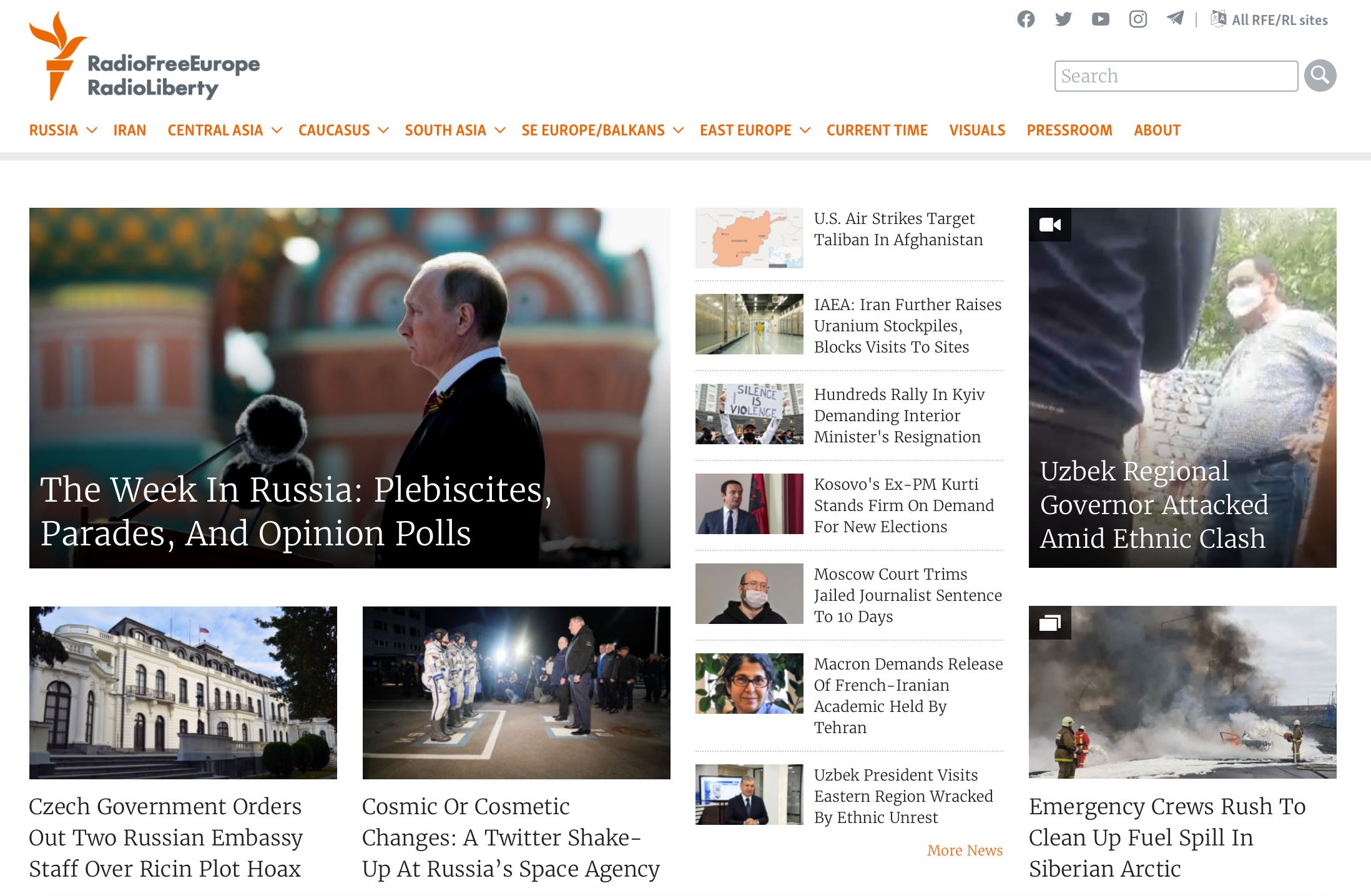 Here’s the front page of the RFE/RL English-language portal from yesterday, Friday June 5, 2020. (Thanks to Bryan MacDonald for catching it.)