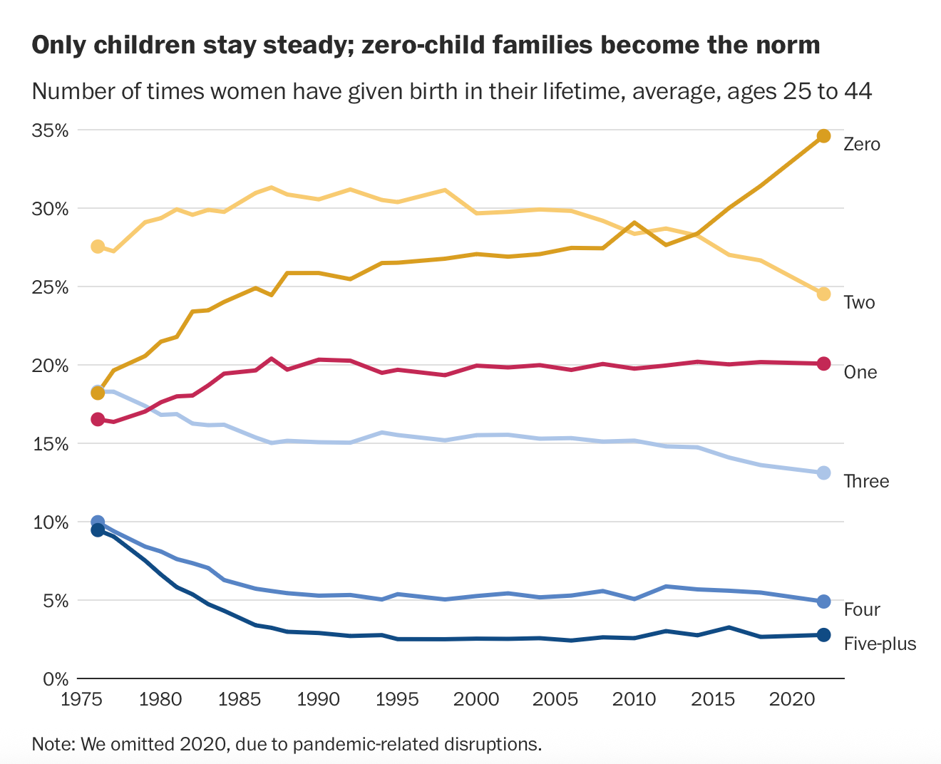 And yet despite all this talk, there are the underlying economic conditions. For example: it’s not surprising that the number of women not having any children started going up in a major way after the 2008 financial crash.