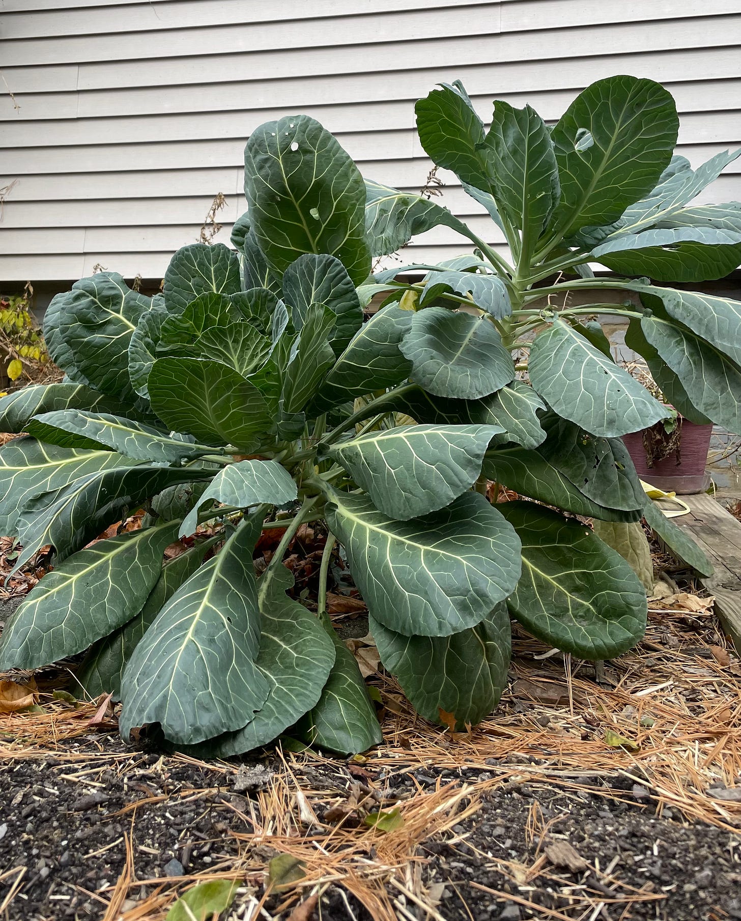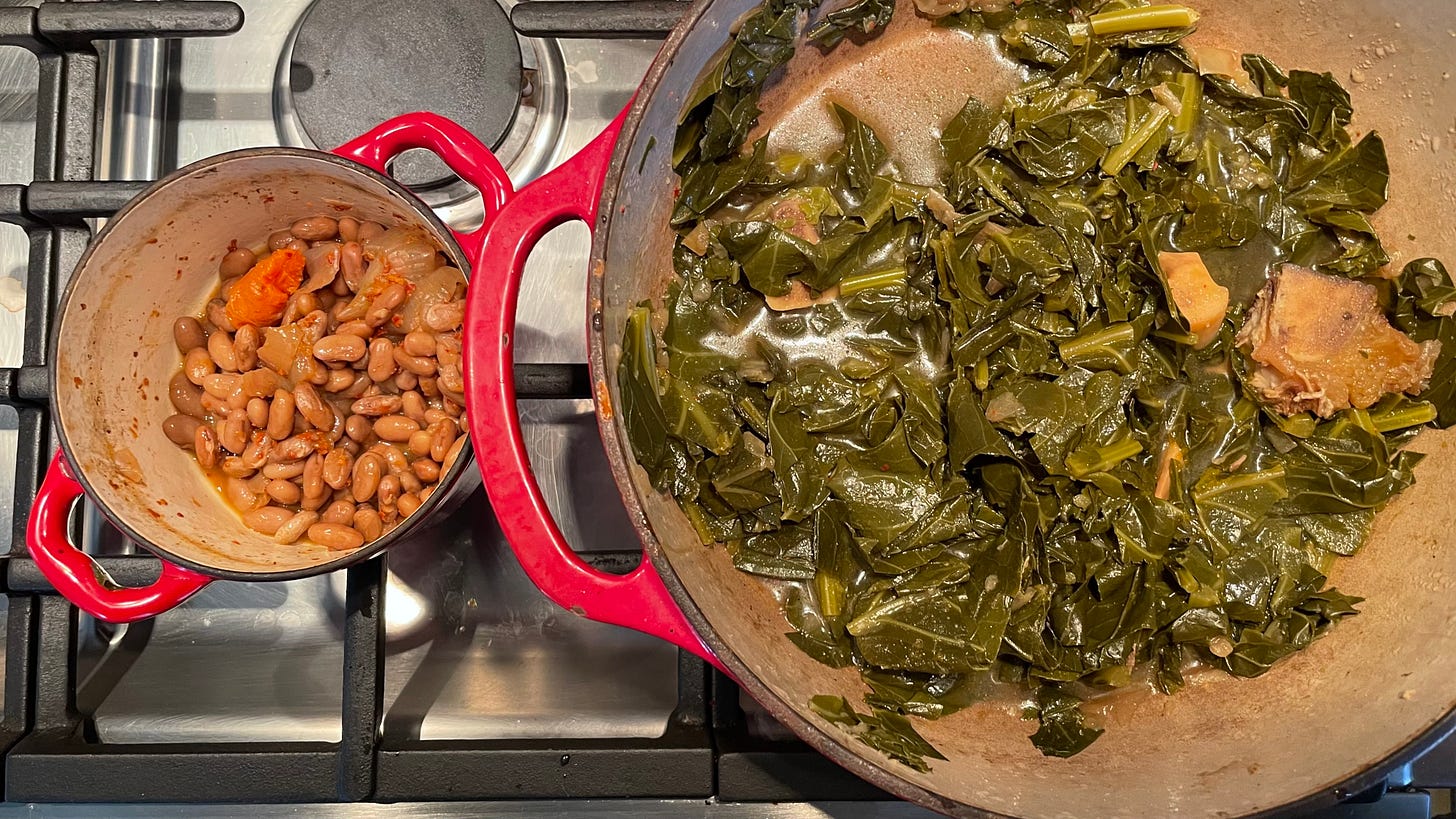 I didn’t really expect it last this long but now I know it’s standard: collards survive nice and fresh right into winter. So I collected half the plants I have growing outside and made some collard greens. Also baked the little pile of beans I grew this season. Turned out great.