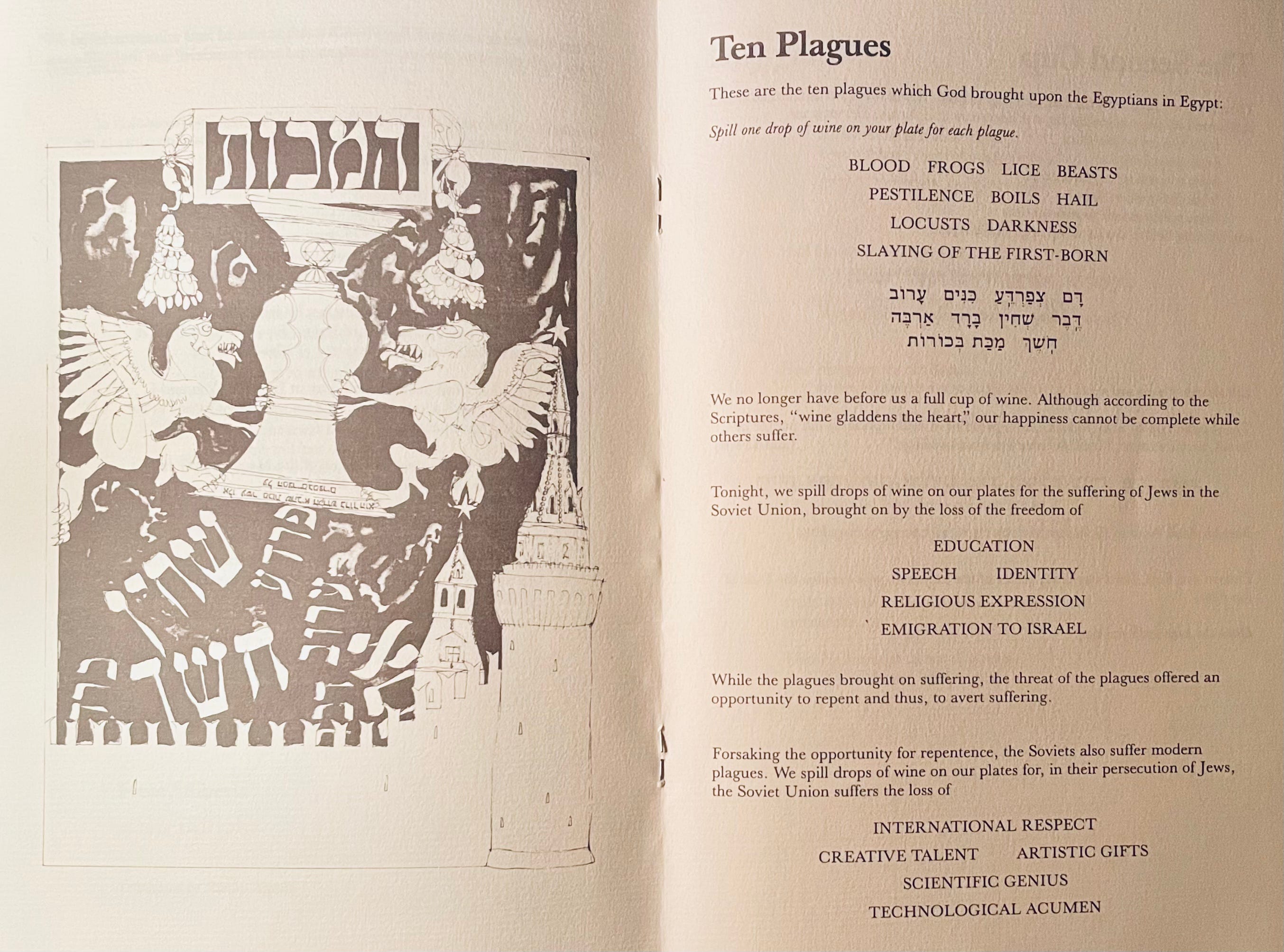 PS: We briefly discuss a special agitprop Passover prayer booklet — a Haggadah — that I discovered while doing research for the book. It was created as part of the American movement to save Soviet Jews from communism. It has an interesting segment where it celebrates modern plagues that were unleashed by God on the Soviet Union because it would not let out its Jews — just like what happed with Egypt back in the day. But instead of blood and locusts, the USSR got hit with much less dramatic weapons — like the loss of scientific genius and international respect. Still, this Haggadah wasn’t wrong. Didn’t the godless commies at least take a little peek at the bible? Everyone knows our petty God gets angry when you don’t let us out!