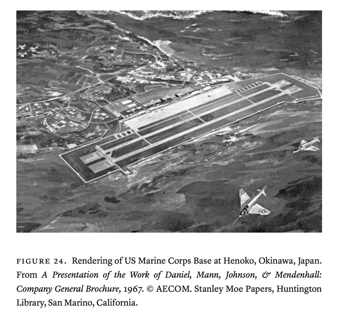 The book traces architecture’s role in postwar and Cold War American imperialism through the history of Daniel, Mann, Johnson and Mendenhall (DMJM), the firm later known as AECOM. Often viewed by critics and practitioners as a shadowy behemoth whose role blurs the line between an architecture and engineering firm and a defense contractor, AECOM is the biggest such firm in the world, with its thumb in seemingly every pie, including less savory ones such as inquiries into the reconstruction of a post-urbicide Gaza and water infrastructure for the now-beleaguered NEOM megaproject in Saudi Arabia. Were—one will learn in Cayer’s book—it ever thus!