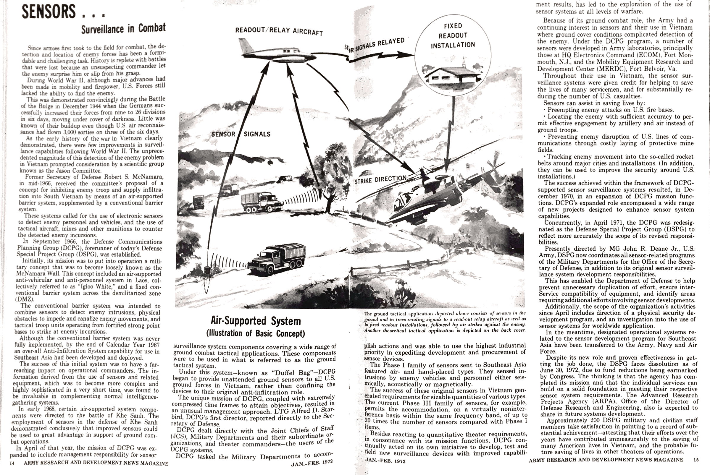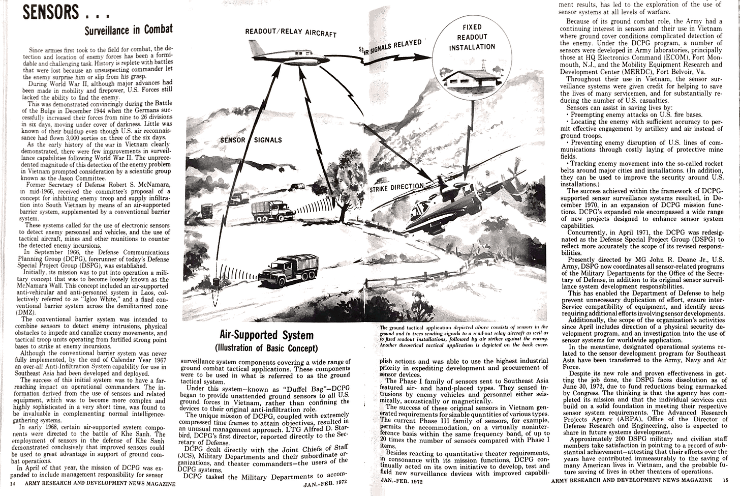IGLOO WHITE was developed with a bit of help from ARPA, the agency that was back home at that exact same time funding the development of the first version of the Internet — the ARPANET. This networking technology would, on the one hand, form that backbone of global military and intelligence communications for the United States and, on the other hand, be shortly privatized and would eventually grow into what we now know as the Internet.