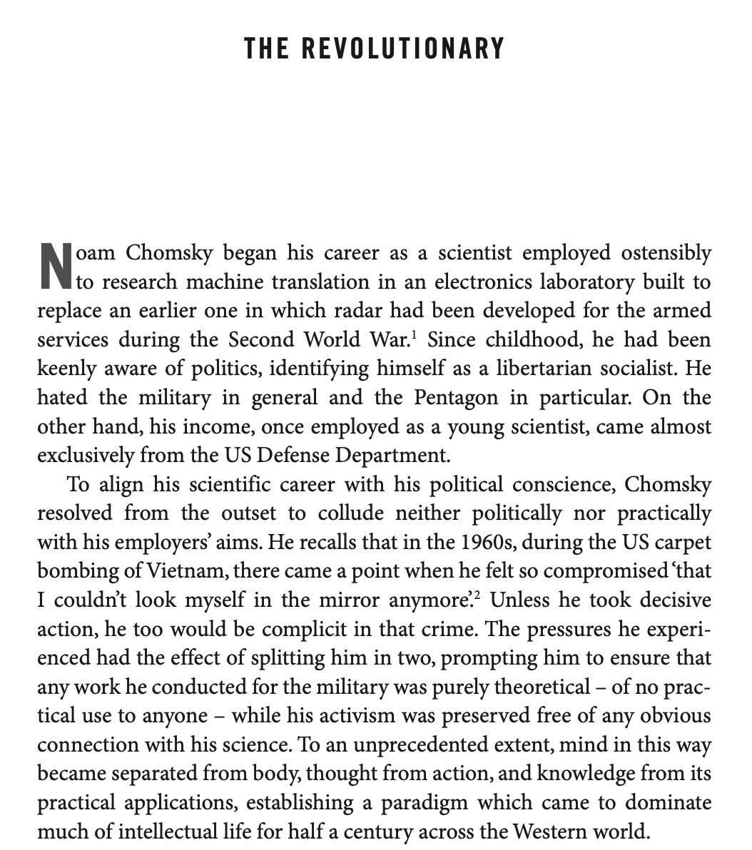This split in Chomsky’s brain — the radical and the early AI weapons guy — was best explored by Chris Knight in his book Decoding Chomsky.